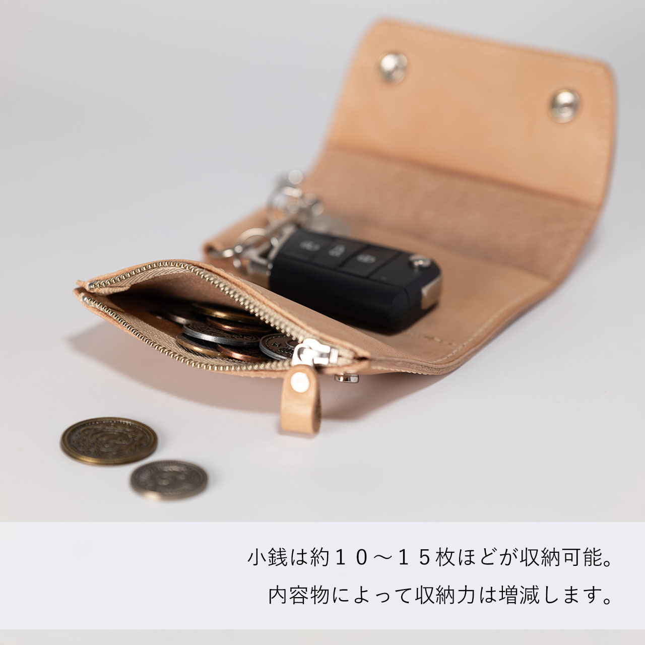名入れ刻印が可能です。イニシャルや記念日など、大切な想いをそっと革に刻みます。